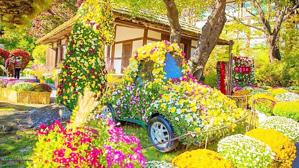 도리마을 은행나무숲의 매력은 단순히 색감에 머물지 않는다. 숲길을 걷다 보면 나지막한 전통 가옥이 이어지고, 담벼락마다 감성적인 벽화가 자리한다.