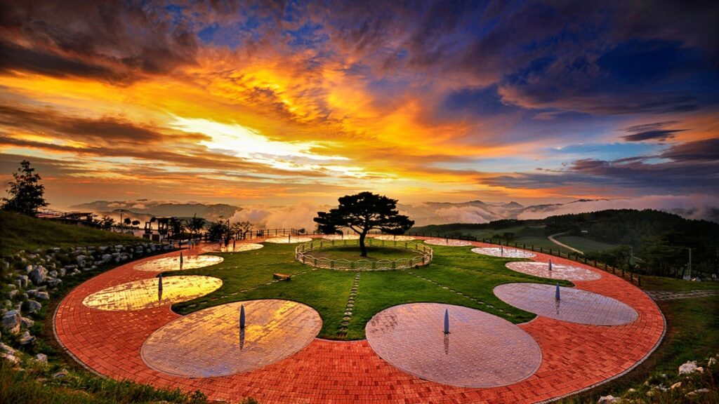 안개가 천천히 능선을 덮고, 붉은 잎사귀가 물결처럼 산허리를 따라 흐른다. 계곡물 위로 비치는 햇살은 유리처럼 투명하고, 바람은 나뭇잎 사이를 스치며 깊은 산의 향기를 남긴다.